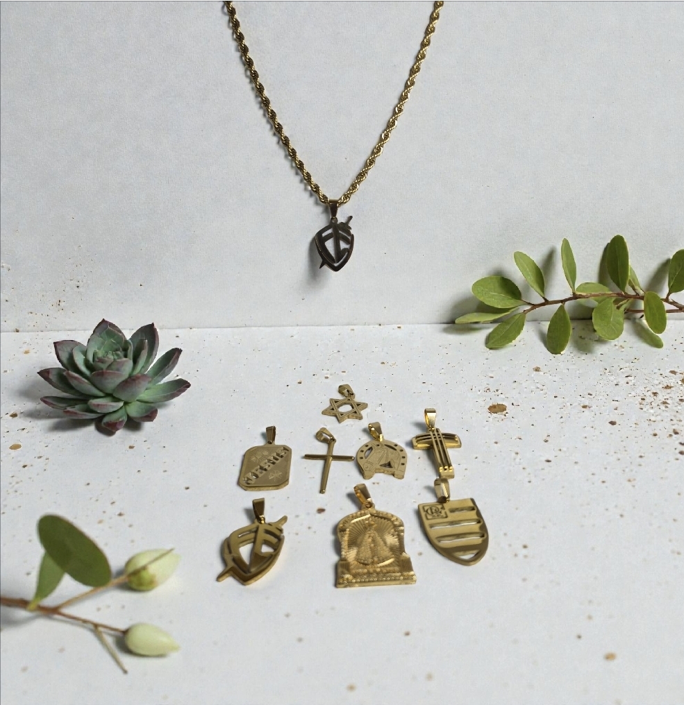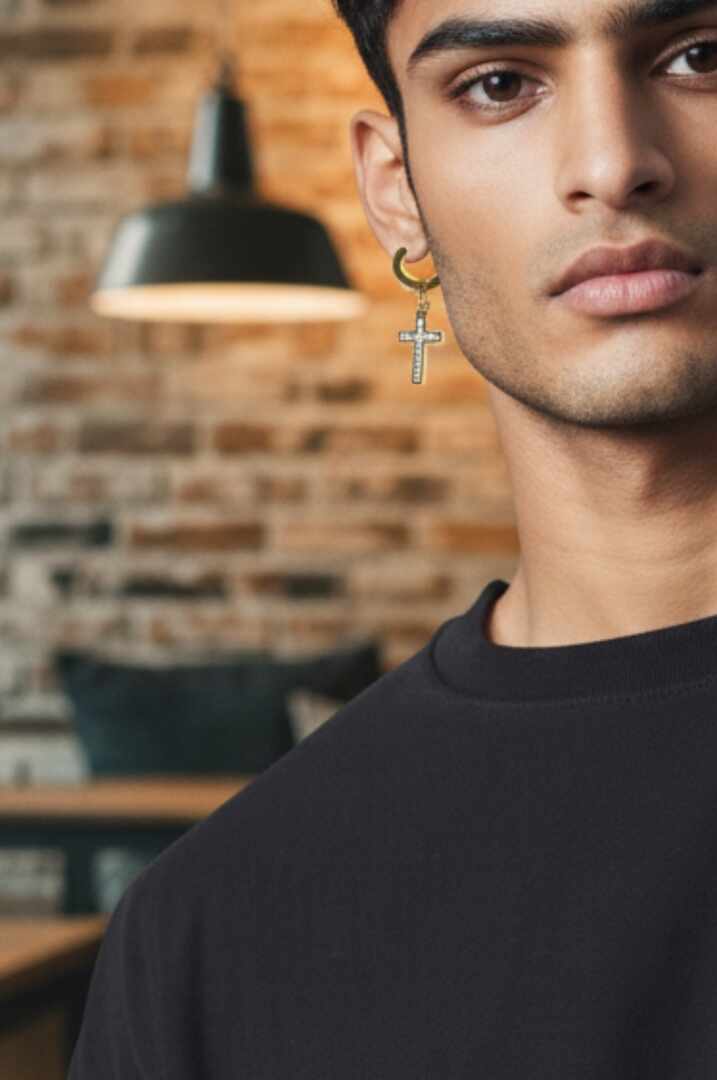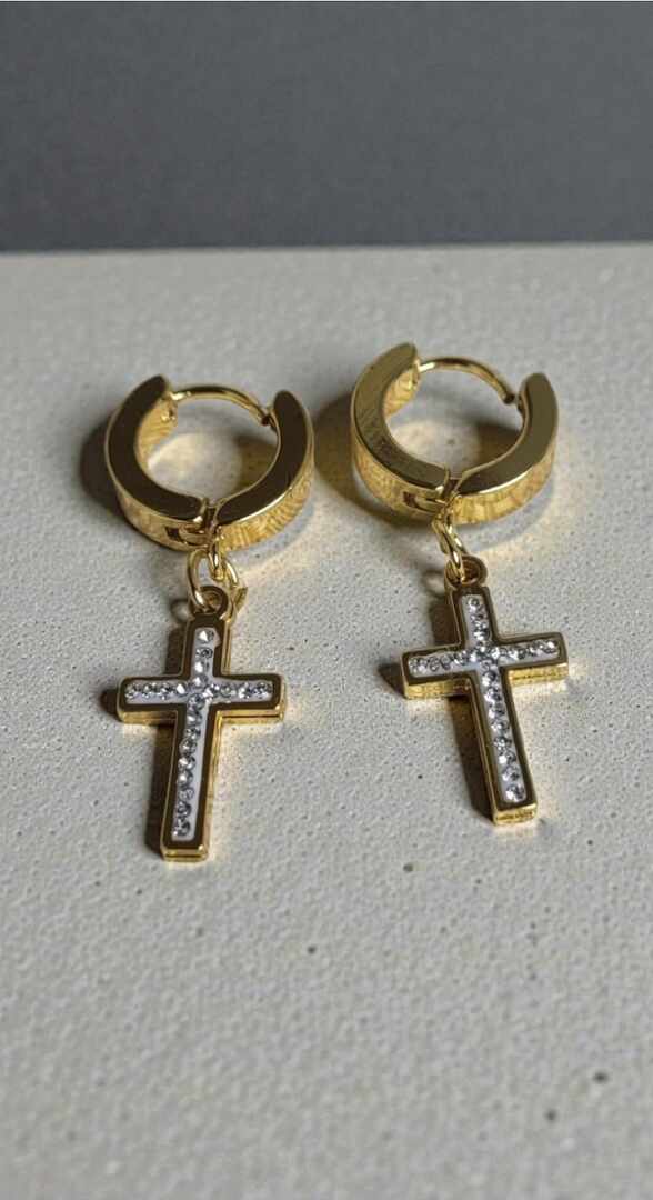 - BRINCO ARGOLINHA PENTULO CRUZ AÇO DOURADO